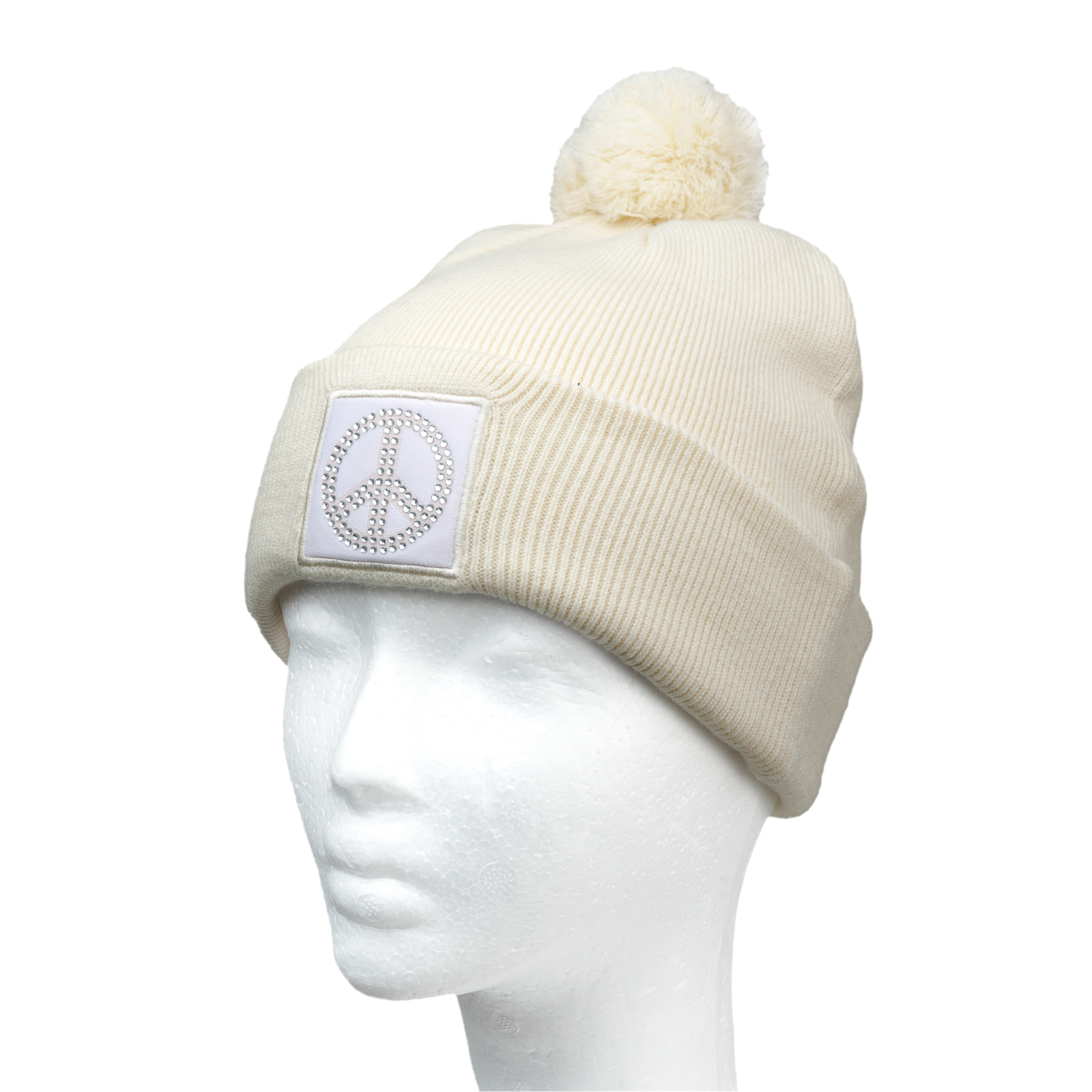 Mobile Preview: Mütze Peace Cremeweiß mit Bommel
