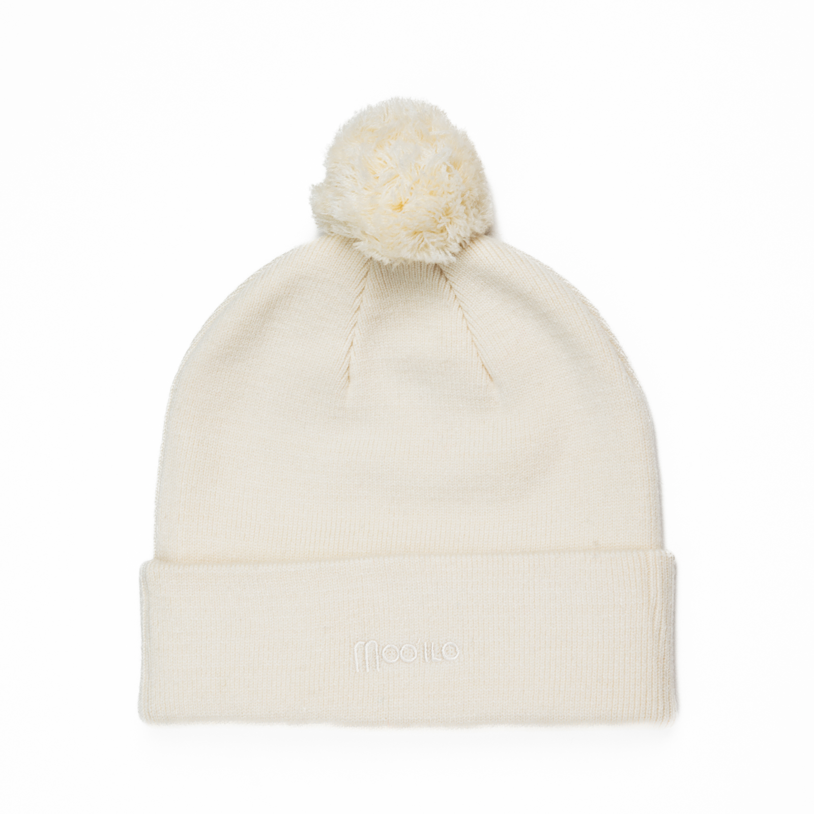 Preview: Mütze Peace Cremeweiß mit Bommel