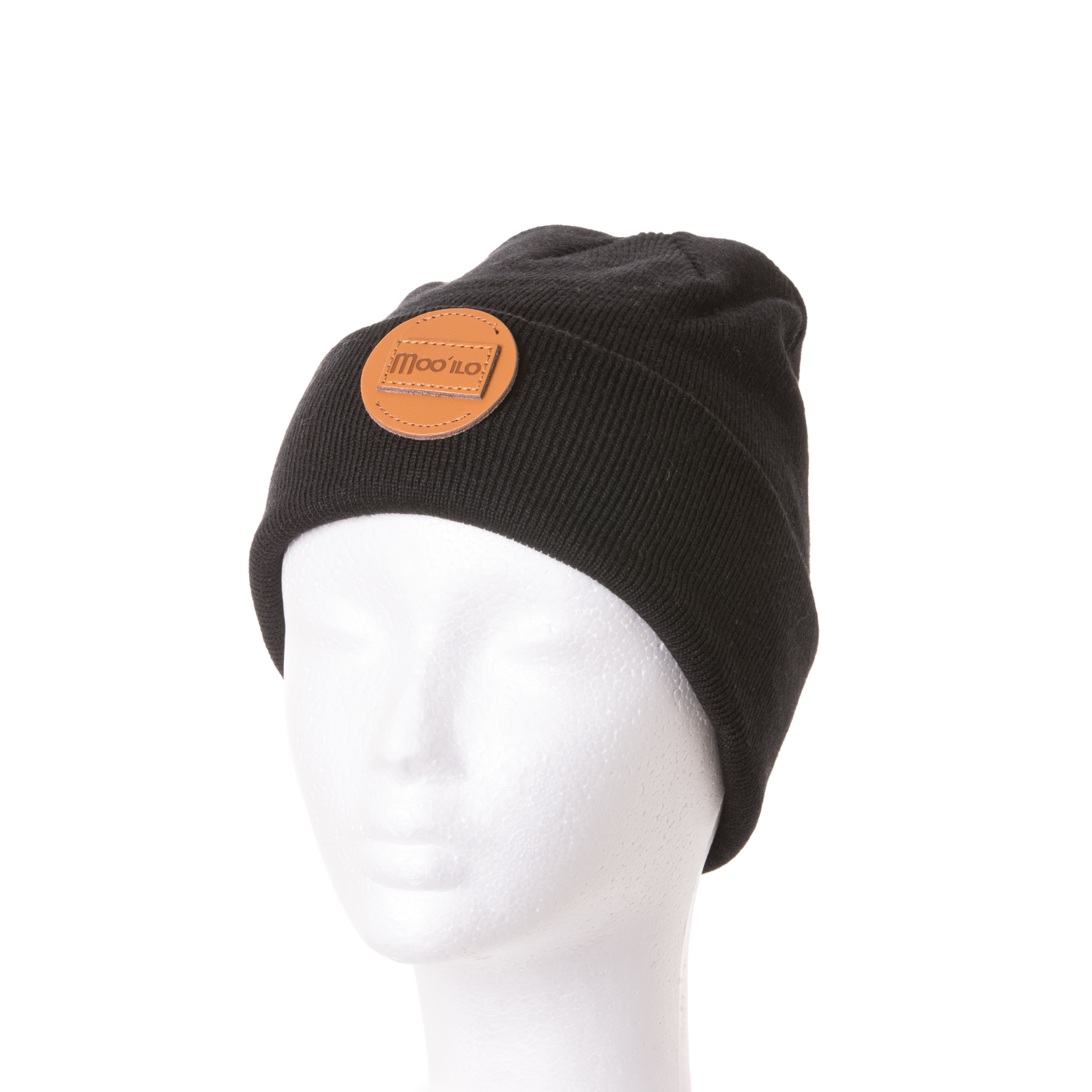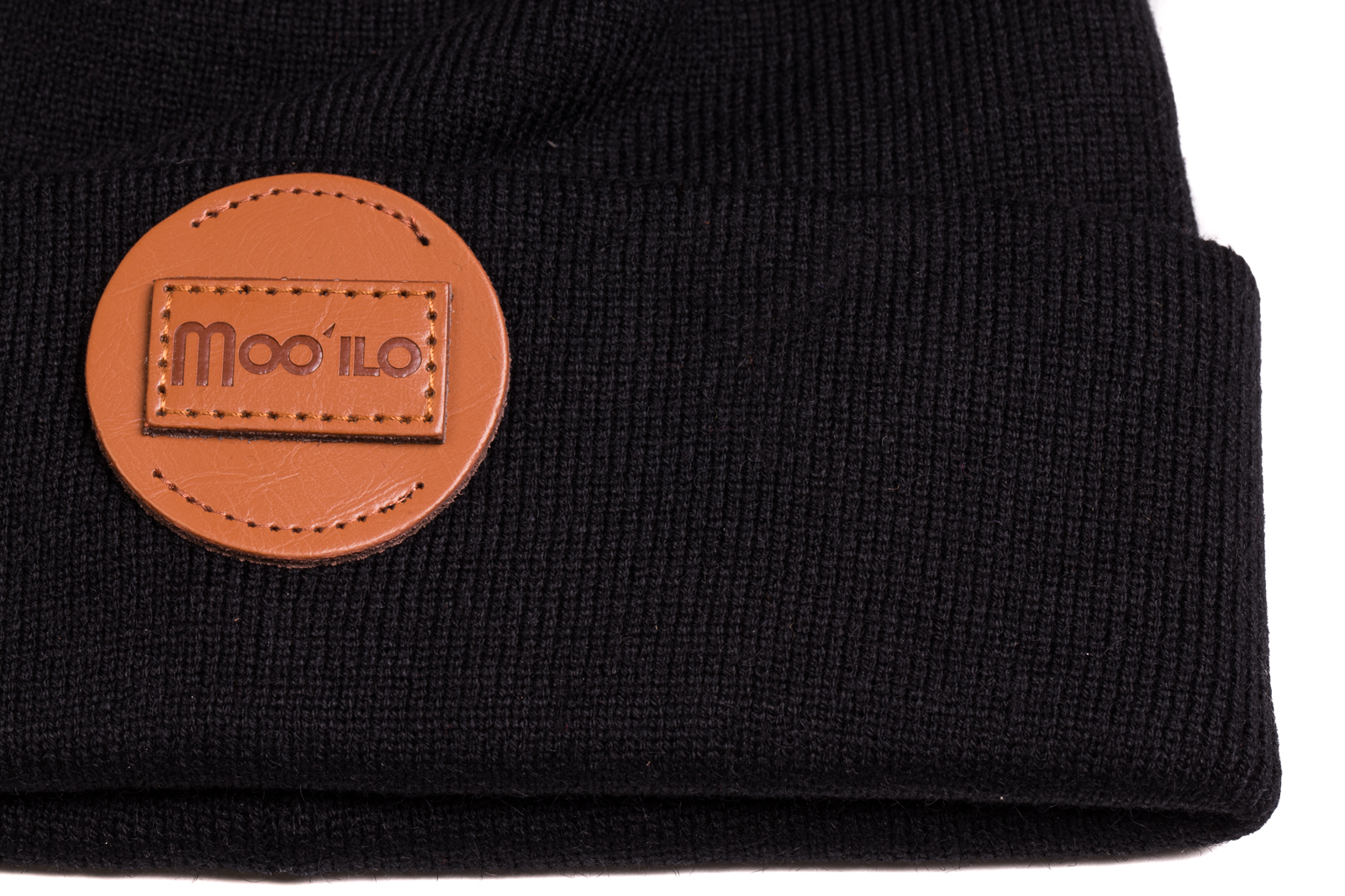 Schwarze Mütze mit edlem Leder Logo